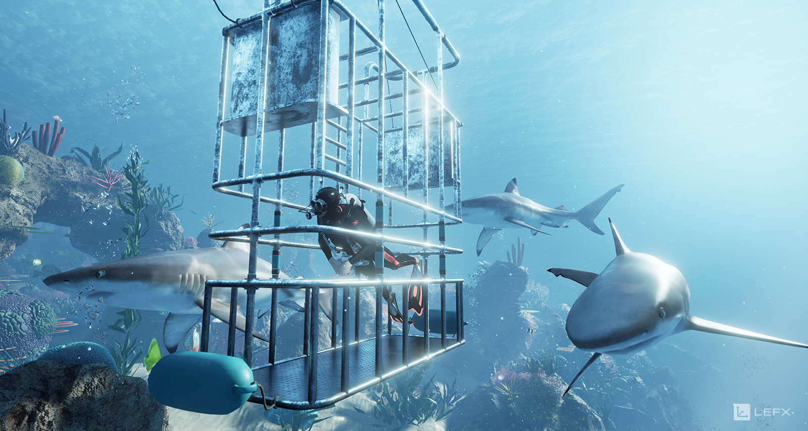 Unser Unterwasser-Showcase Deep Blue hat schon viele Messebesucher*innen in seinen Bann und auf den Meeresboden gezogen. Denn diese interaktive Story war schon auf etlichen Events im Einsatz – Unter anderem für Schenker Technologies zur Vorführung von VR-Hardware, aber auch im LEAVR XR Arcade in der Leipziger Media City konnte man diese Experience erleben.